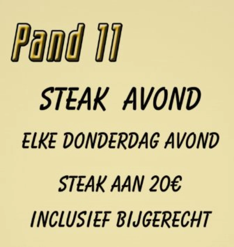Elke donderdagavond kan je bij ons een lekker stuk steak eten inclusief saus en bijgerecht voor maar 20€